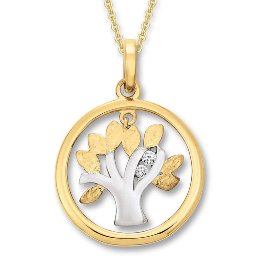 Zirkonia Lebensbaum Anhänger aus 333 Gelbgold