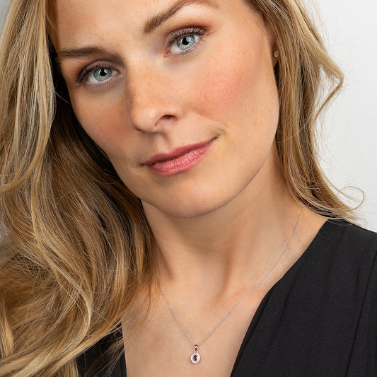 0,05 ct Diamant Brillant Rubin Anhänger aus 585 Weißgold