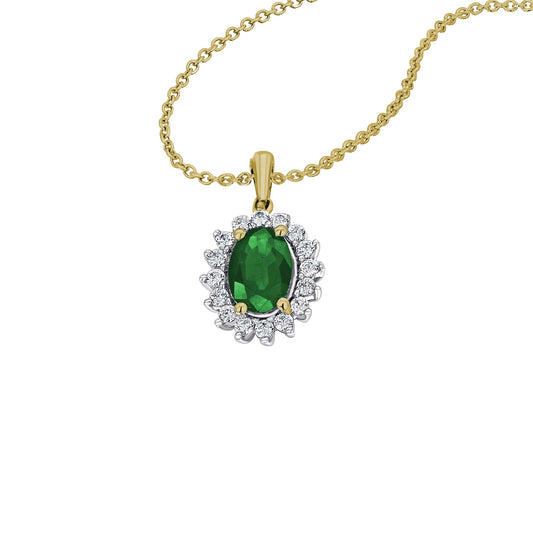 0,25 ct Diamant Brillant Smaragd Anhänger aus 585 Gelbgold