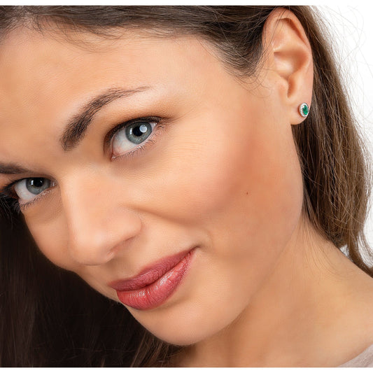 0,10 ct Diamant Brillant Smaragd Ohrringe Ohrstecker aus 585 Weißgold