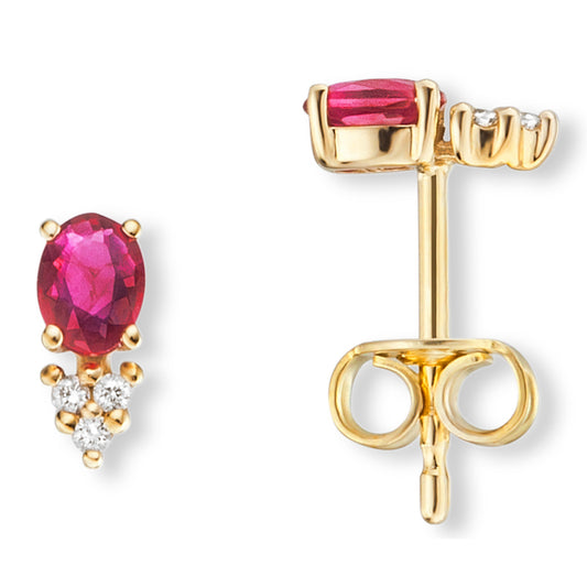 0.02 ct Diamant Brillant Rubin Ohrringe Ohrstecker aus 585 Gelbgold