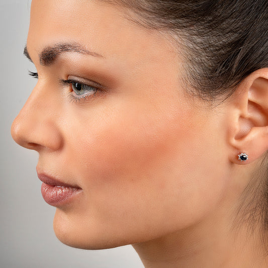 0.05 ct Diamant Brillant Safir Ohrringe Ohrstecker aus 585 Weißgold