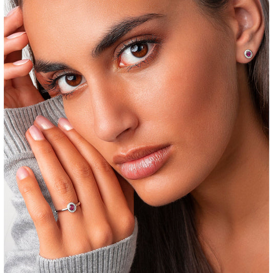 0,10 ct Diamant Brillant Rubin Ohrringe Ohrstecker aus 585 Weißgold