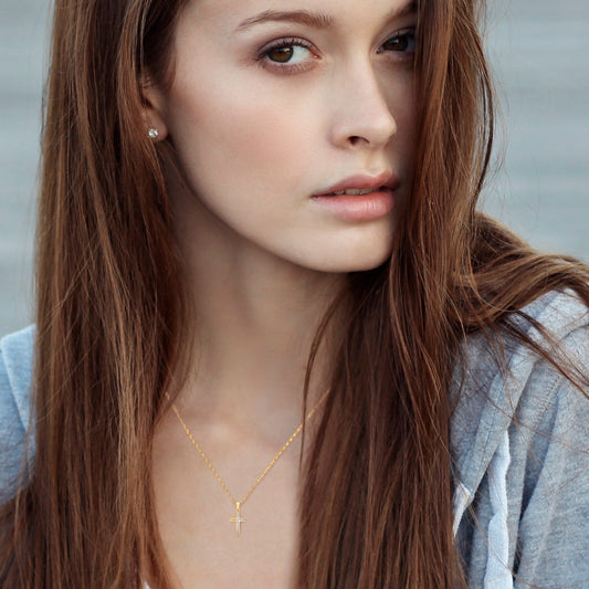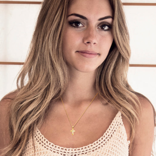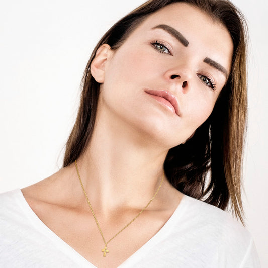 Zirkonia Kreuz Anhänger aus 333 Gelbgold