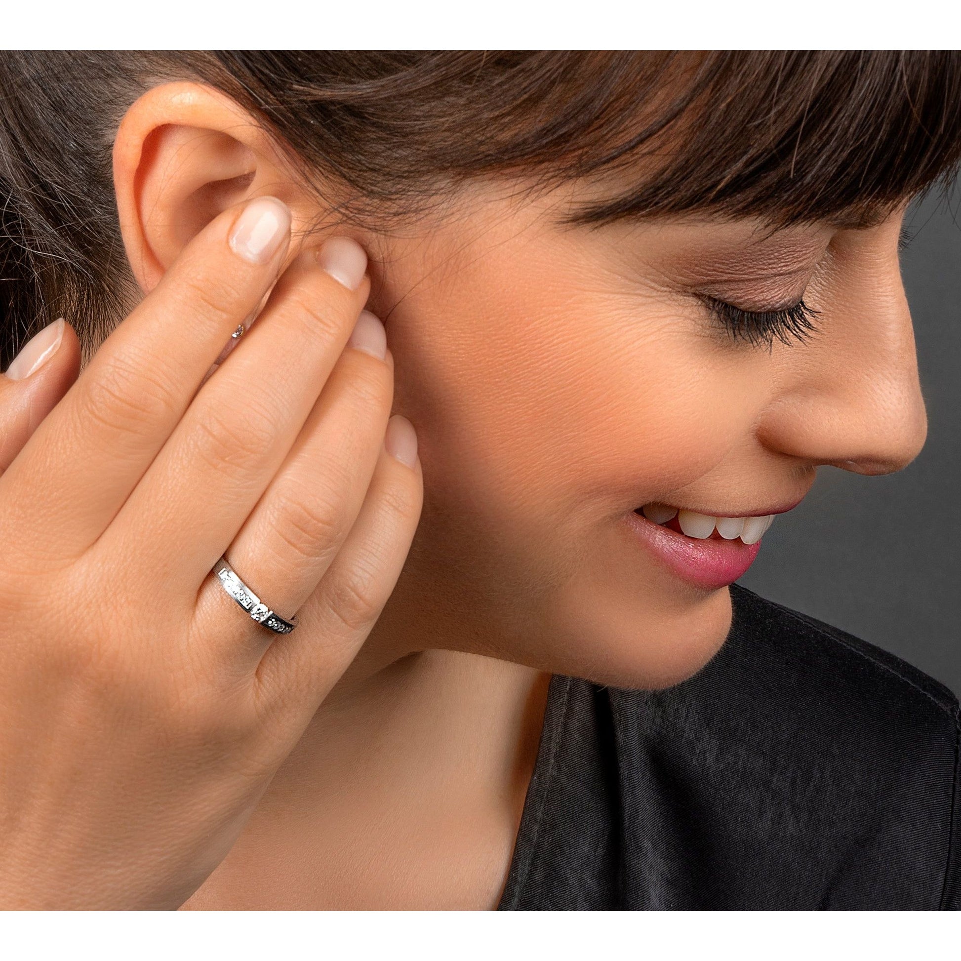 Zauberhafter Damenring aus 585er Weißgold (14 Karat), der mit grazil eingesetzten Brillanten sowie einem etwas größeren Brillanten ein besonderes Lebensgefühl versprüht. Bringt als Vorsteck-, Freundschafts- oder Verlobungsring getragen die Hand zum Funkeln und Gesichter zum Strahlen.