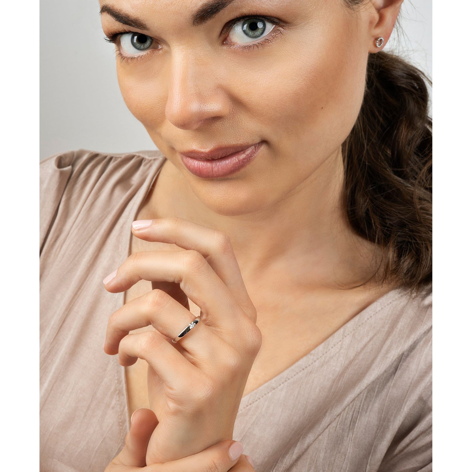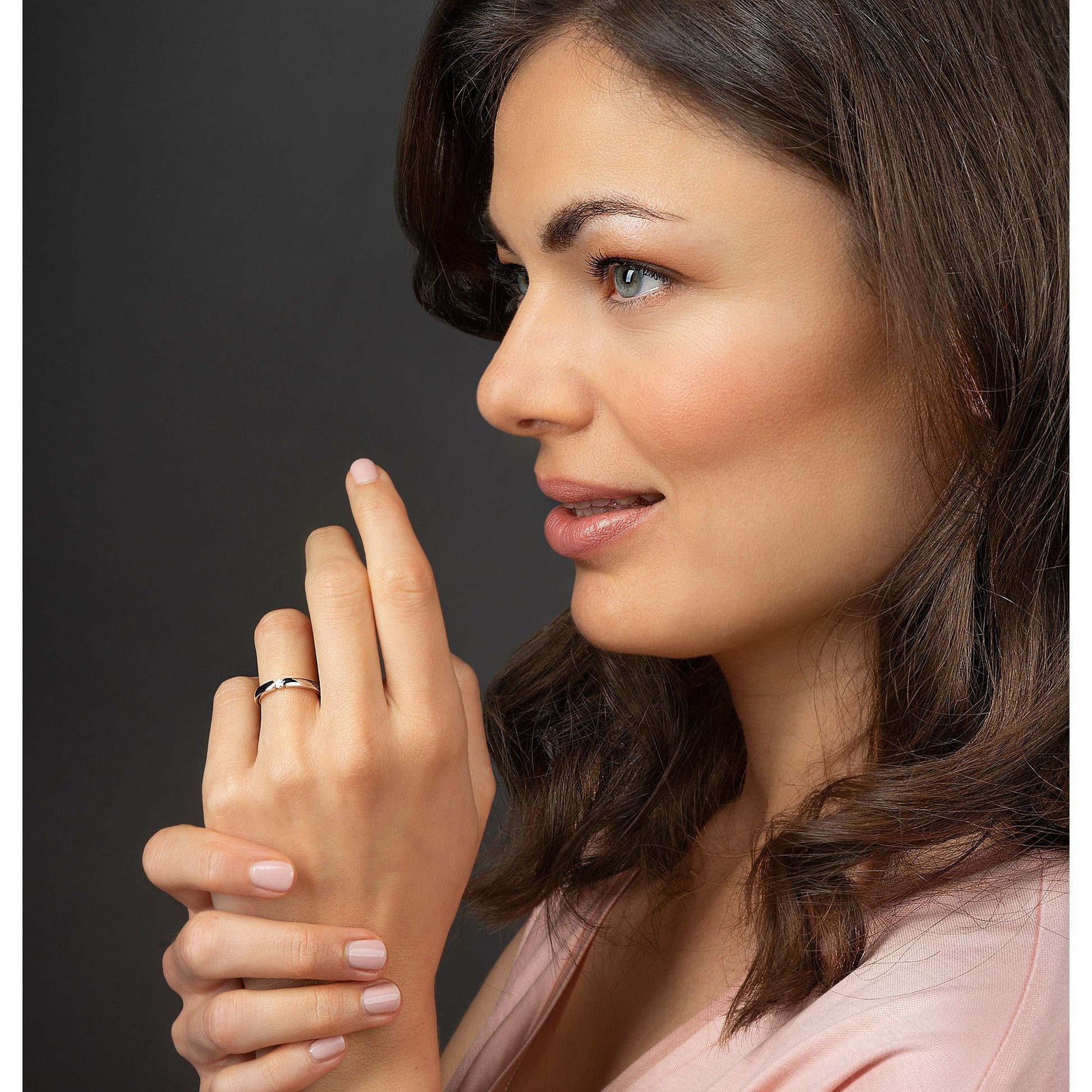 Der funkelnde 0,08 Karat Diamant in einer geschwungenen Spannfassung aus 585er Weißgold verkörpert zarte Eleganz. Mit seinem klassischen Design passt das Schmuckstück von One Element perfekt zu jeder Gelegenheit und rundet jedes Outfit perfekt ab. Der Artikel wird mit einem IGI (International Gemological Institute) Zertifikat geliefert.