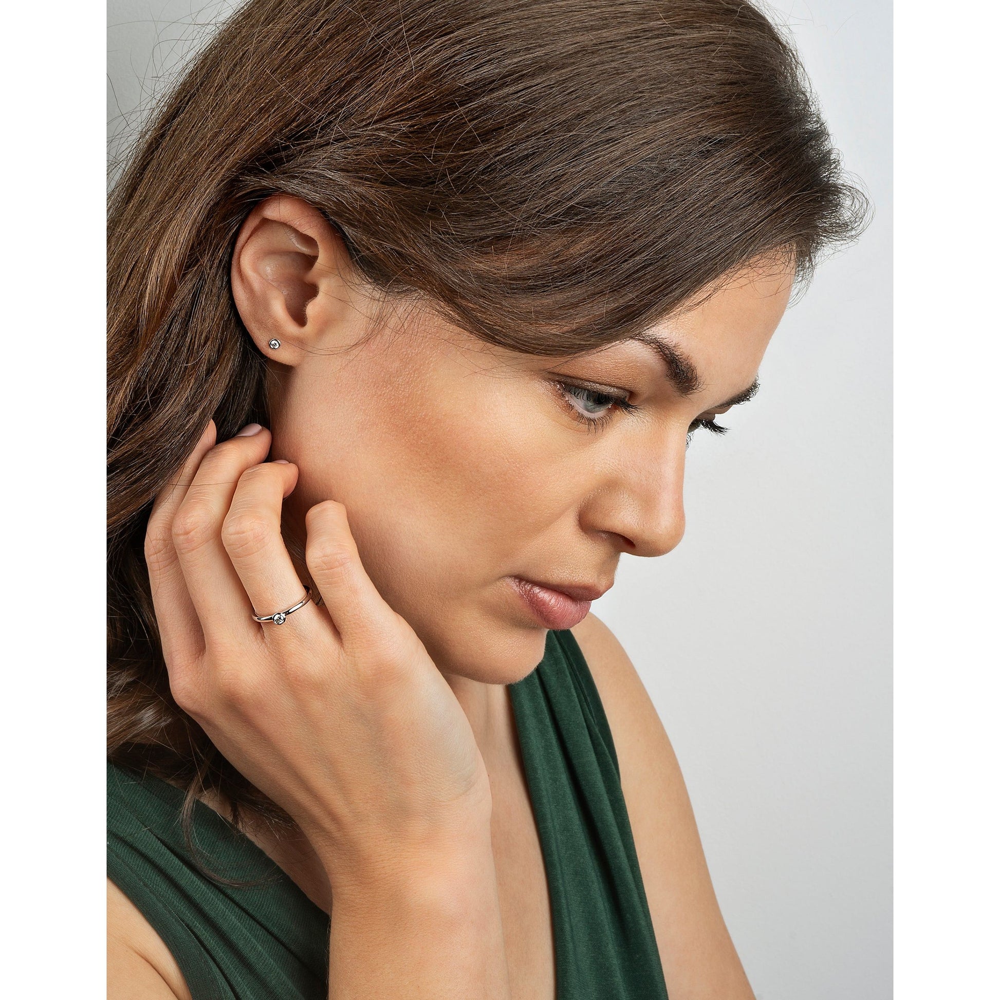 Der funkelnde 0,10 Karat Diamant in einer filigranen Zargenfassung aus 585er Weißgold verkörpert zarte Eleganz. Mit seinem klassischen Design passt das Schmuckstück von One Element perfekt zu jeder Gelegenheit und rundet jedes Outfit perfekt ab. Der Artikel wird mit einem IGI (International Gemological Institute) Zertifikat geliefert.