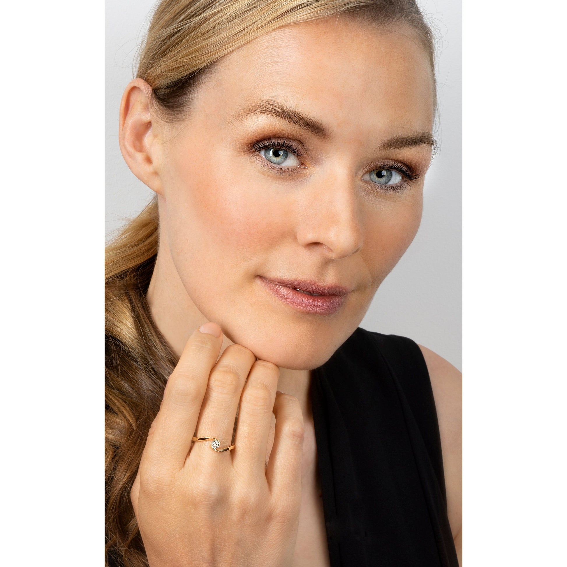 Der funkelnde 0,20 Karat Diamant in einer filigranen Twistfassung aus 585er Gelbgold verkörpert zarte Eleganz. Mit seinem klassischen Design passt das Schmuckstück von One Element perfekt zu jeder Gelegenheit und rundet jedes Outfit perfekt ab. Der Artikel wird mit einem IGI (International Gemological Institute) Zertifikat geliefert.