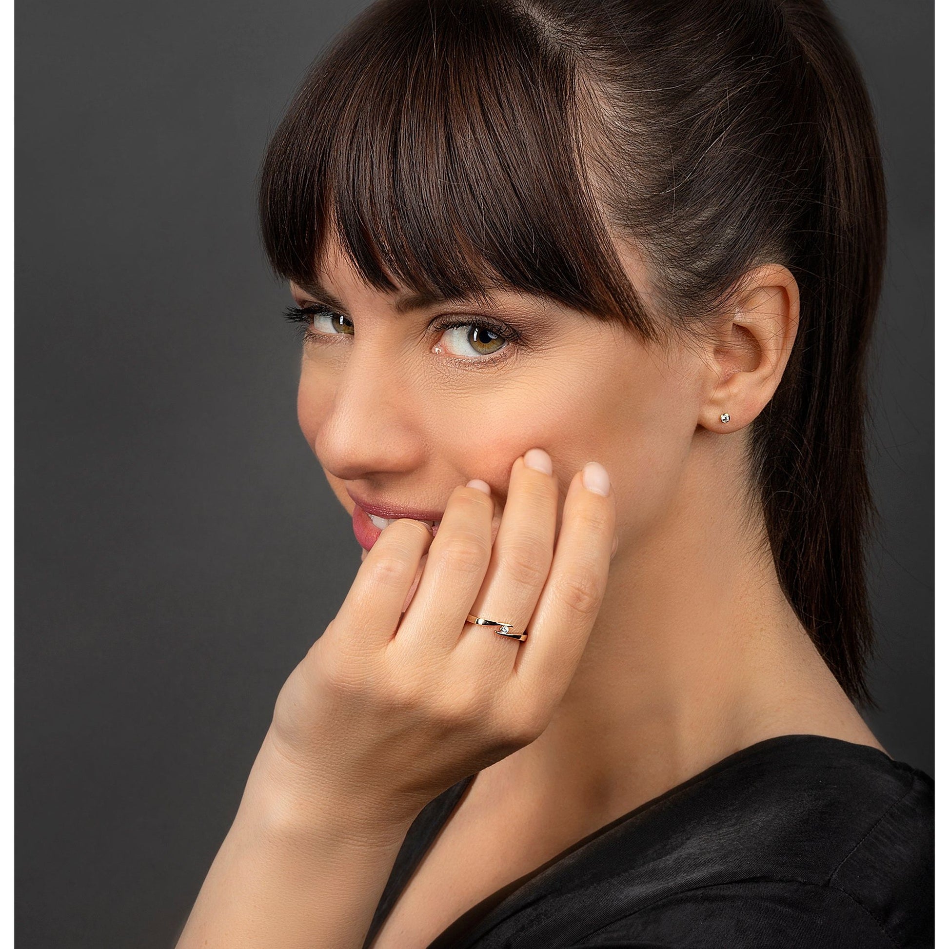 Elegant geschwungener Diamantring aus 585er Gelbgold (14 Karat), der durch seinen klassischen und gleichzeitig modernen Charme besticht. Mit seinem schillernden Brillanten in einer elegant geschwungener Fassung zieht er als Solitär-, Vorsteck- oder Verlobungsring die Blicke auf sich. Der Ring ist in fünf Ausführungen mit Brillant von 0,05 bis 0,25 Karat erhältlich.
