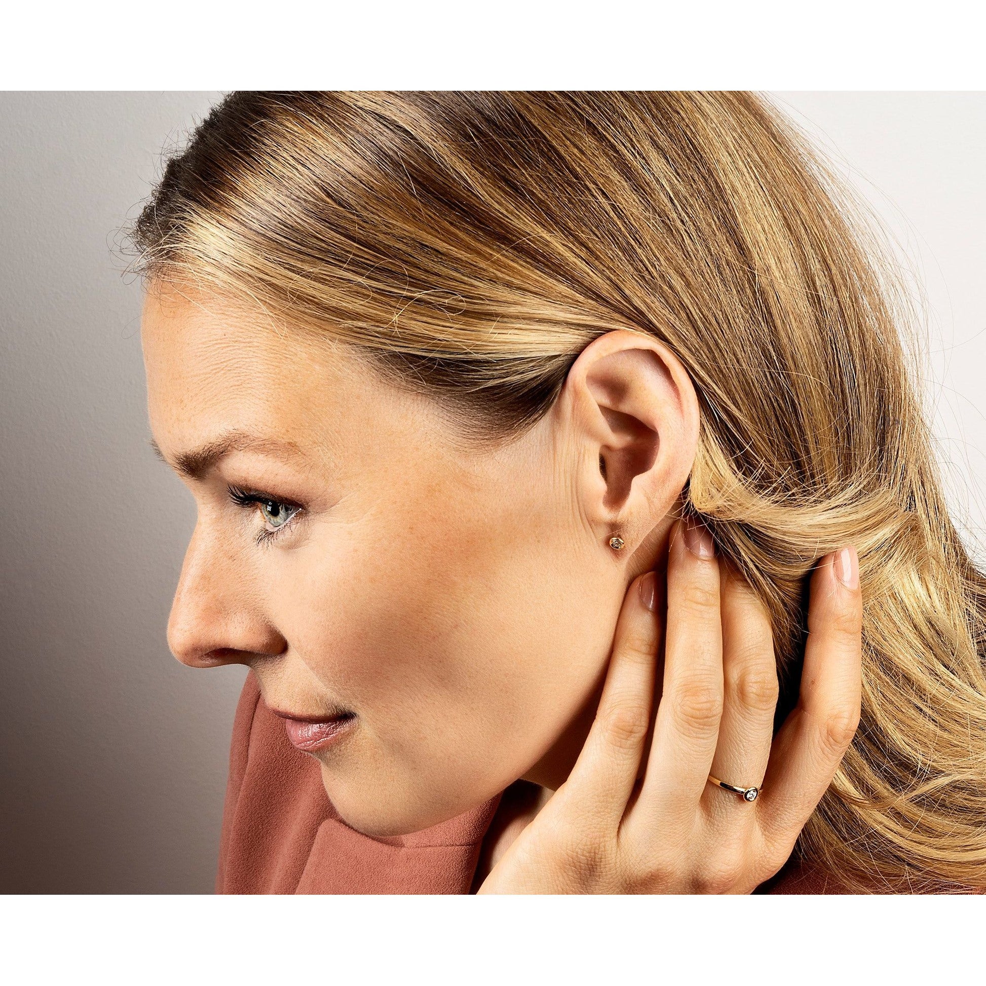 Die beiden funkelnden Diamanten, zusammen 0,30 Karat in einer filigranen Zargenfassung aus 585er Gelbgold verkörpert zarte Eleganz. Mit seinem klassischen Design passt das Schmuckstück von One Element perfekt zu jeder Gelegenheit und rundet jedes Outfit perfekt ab. Der Artikel wird mit einem IGI (International Gemological Institute) Schmuck-Zertifikat geliefert.